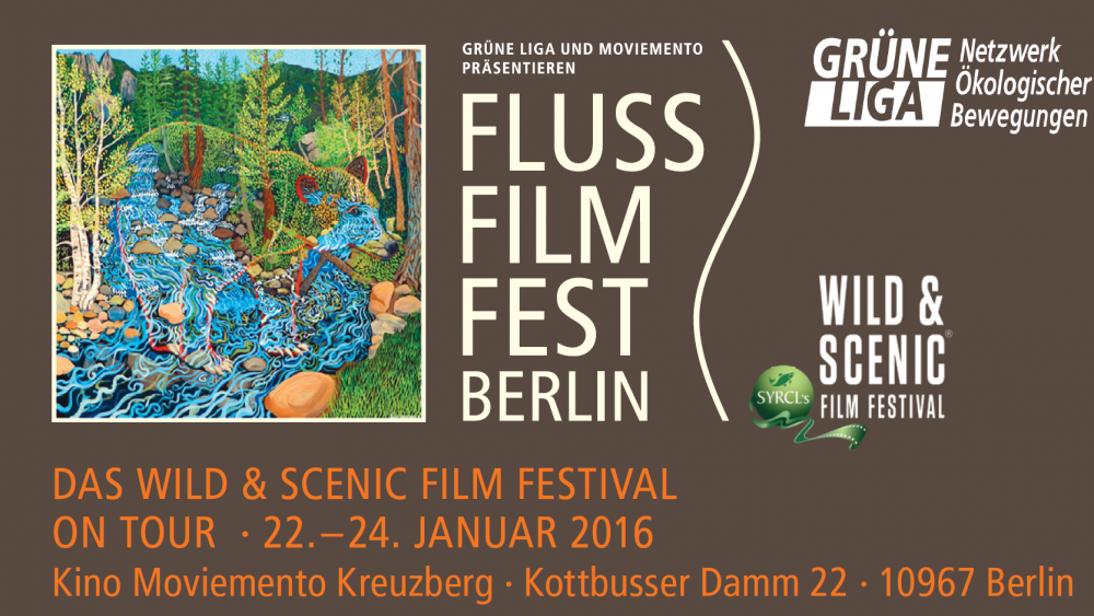 Vom 22. bis 24. Januar 2016 findet das erste „Flussfilmfest Berlin“ statt. Flüsse gehören zu den artenreichsten und faszinierendsten Lebensräumen unseres Planeten. In berauschenden Bildern nimmt das Festival die Besucher mit auf eine abenteuerliche Reise unter die Wasseroberfläche, zeigt wilde Ströme, entlegene Gegenden und ganz besondere Menschen, die für den Erhalt dieser kostbaren Lebensräume kämpfen. Das aus Nordamerika stammende „Wild & Scenic Film Festival“ gastiert damit erstmals in Europa. Im Kreuzberger Kino Moviemento werden über 30 Filme in drei Tagen gezeigt, ergänzt durch thematische Einführungen und Diskussionsrunden.