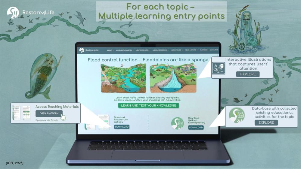 The Living Floodplains: Learn, Explore, Restore4Life Digital Toolbox is an interactive learning platform designed for teachers, students and interested citizens. It provides a clear explanation of how floodplains and wetlands function and highlights the importance of their protection and restoration for the climate, biodiversity and society.