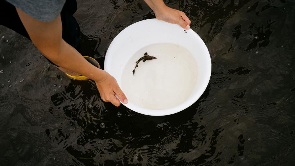 Schülerinnen und Schüler sind auch immer wieder bei der Auswilderung von Stören in der Oder dabei. | Foto: Jacobia Dahm (Informationen zum Copyright unterhalb des Texts)